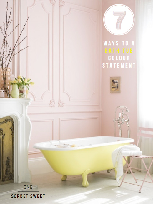 The saying ‘kitchens and bathrooms sell houses’ may well be true but personally I think creating a beautiful bathroom is a very personal choice, not something that should be approached with a view to selling the house. This is a room that’s well worth investing in given how much it will be used – and the design has to be versatile because it will need to work hard get being practical when you’re in a rush and restful when you’re in the mood to relax. I think a great way to invite colour into a bathroom design is through a colourful bath tub – it’s the perfect way to make a memorable and stylish colour statement. With that in mind, I’ve pulled together seven knockout examples of brightly coloured bath tubs that will hopefully spark an idea in your head to invite colour into your own bathroom.