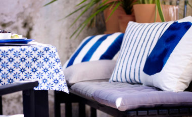 As you walk into Serena & Lily’s Beach House on the outskirts of East Hampton, this is the lofty and airy space that greets you. All kinds of dreamy, right?! The jute rug, blue and white color palette and splashes of graphic patterns? Consider this very much Bright.Bazaar approved!