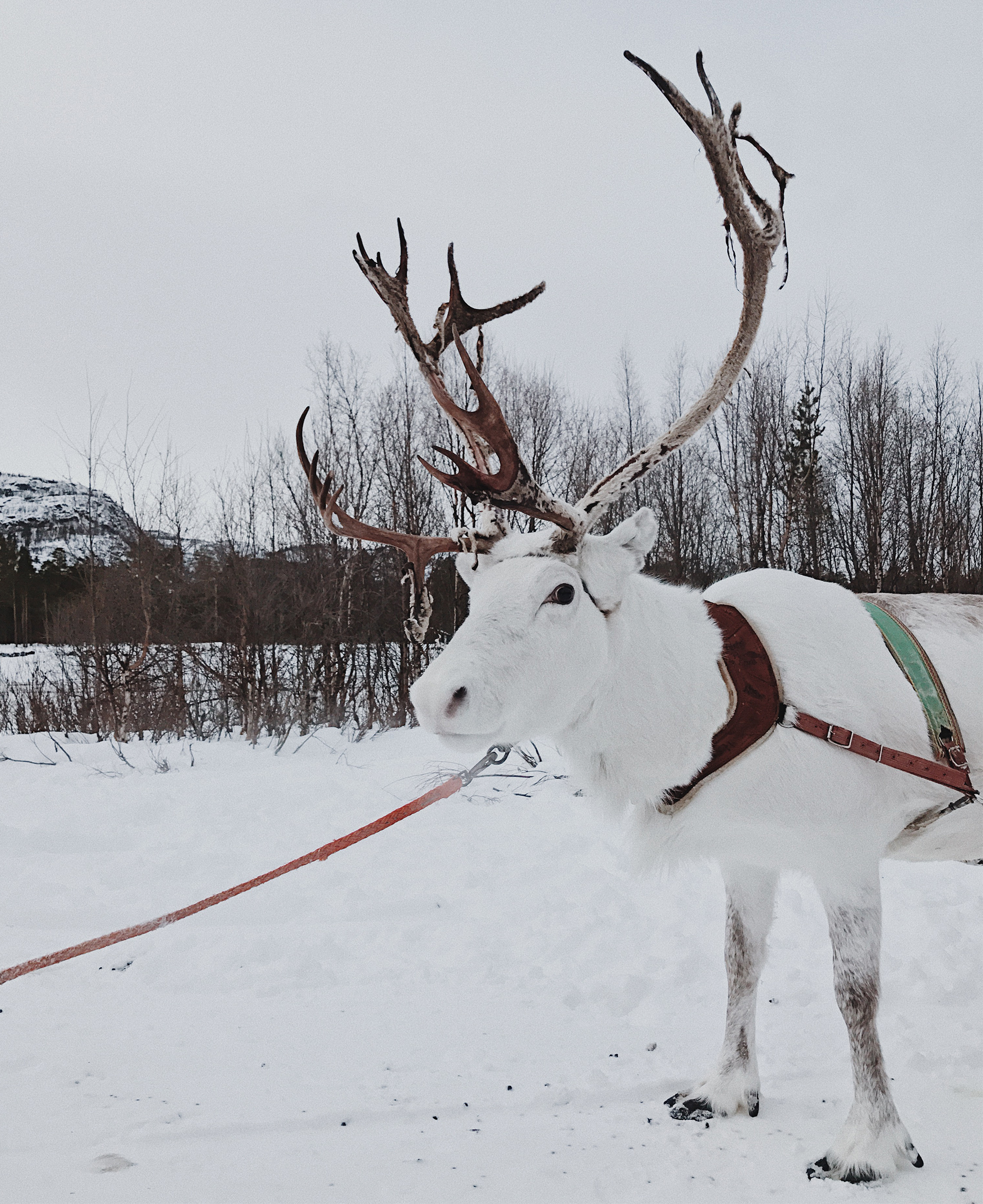 I spent one of my mornings in Alta trekking and sledding though a snow-capped forest with a Sami family and their reindeer. The Sami are the indigenous people of Norway, and there are 60,000 of them in the country – the largest population of all the Sami countries; Norway, Sweden, Finland and Russia. It was such an honor to be welcomed into their life to learn more about their culture and day-to-day living. The family I spent time with are ‘herding’ Sami, which means they look after herds of reindeer, migrating with them through the mountains. Each Sami has their own herd which they migrate with and care for. Sami people speak their own dialect; each village has an individual style of clothing; and they have their own government that sits below the Norwegian government. The reindeers in their herds don’t have names but instead are marked by their ears. (P.S. The flare you see below isn’t the sun, it was a big lamp lighting a snow field!) Have you ever been to Alta or experienced Norway’s Polar Night?